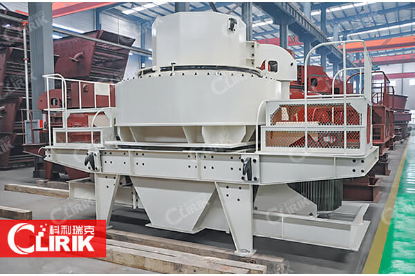 物料由進料斗進入制砂機,經分料器將物料分成兩部分,一部分由分料器中間進入高速旋轉的葉輪中,在葉輪內被迅速加速,其加速度可達數百倍重力加速度,然后以60-70米/秒的速度從葉輪三個均布的流道內拋射出去,首先同由分料器四周自收落下的一部分物料沖擊破碎,然后一起沖擊到渦支腔內物料襯層上,被物料襯層反彈,斜向上沖擊到渦動腔的頂部,又改變其運動方向,偏轉向下運動,從葉輪流道發射出來的物料形成連續的物料幕。這樣一塊物料在渦動破碎腔內受到兩次以至多次機率撞擊、磨擦和研磨破碎作用。被破碎的物料由下部排料口排出。在整下破碎過程中,物料相互自行沖擊破碎,不與金屬元件直接接觸,而是與物料襯層發生沖擊、摩擦而粉碎,這就減少了角污染,延長機械磨損時間。渦動腔內部巧妙的氣流自循環,消除了粉塵污染。